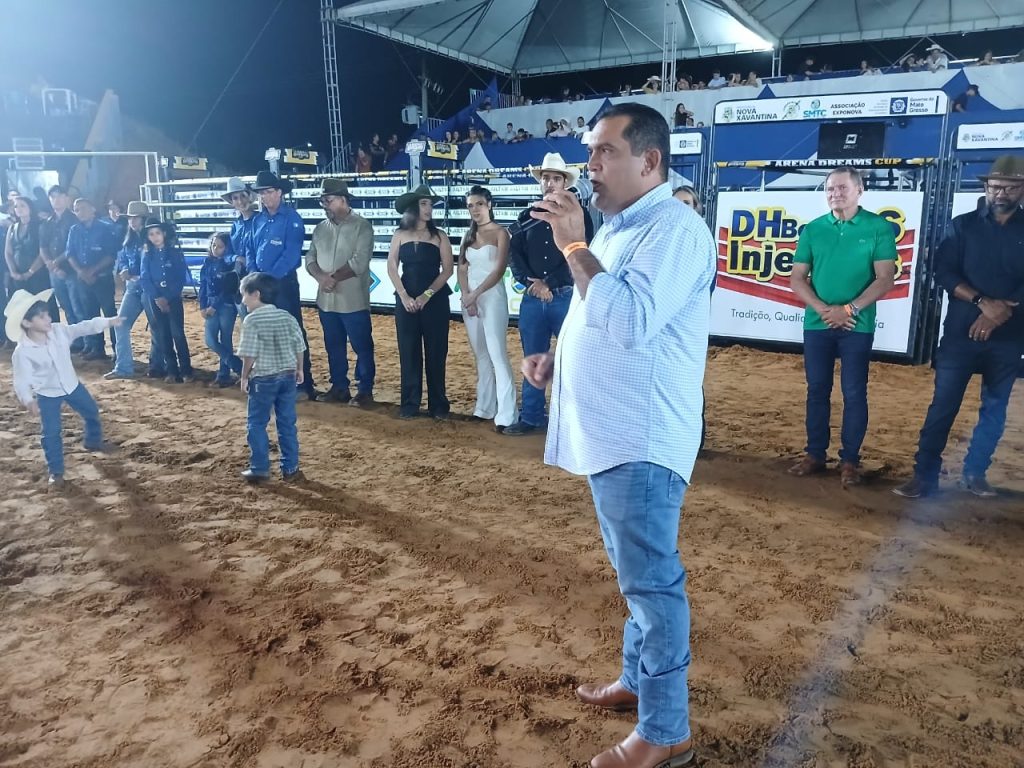 Aberta pelo prefeito João Bang e sua esposa, Secretária Municipal da Assistência Social, Fernanda Rios; pelo presidente da EXPONOVA, empresário Aílton Júnior; presidente da Câmara, vereador Elias Bueno, ex prefeito de Querência, Fernando Gorjen e pelo pré candidato a deputado estadual, Gustavo Bang; o ato contou com a presença de todos os vereadores e secretários municipais.